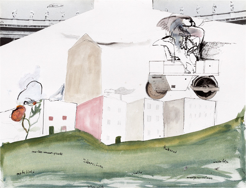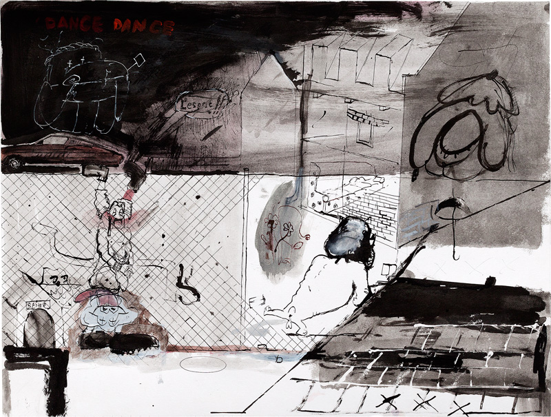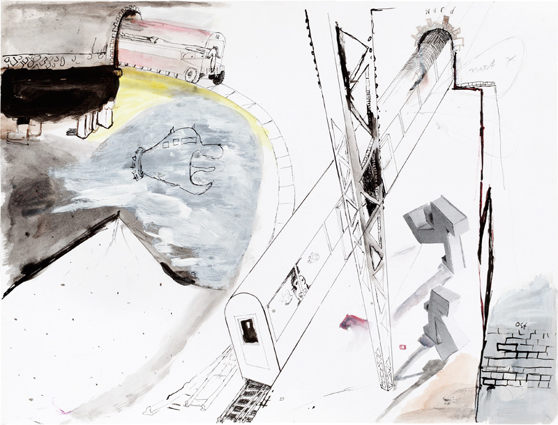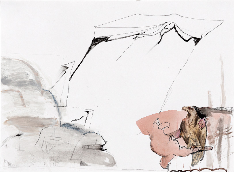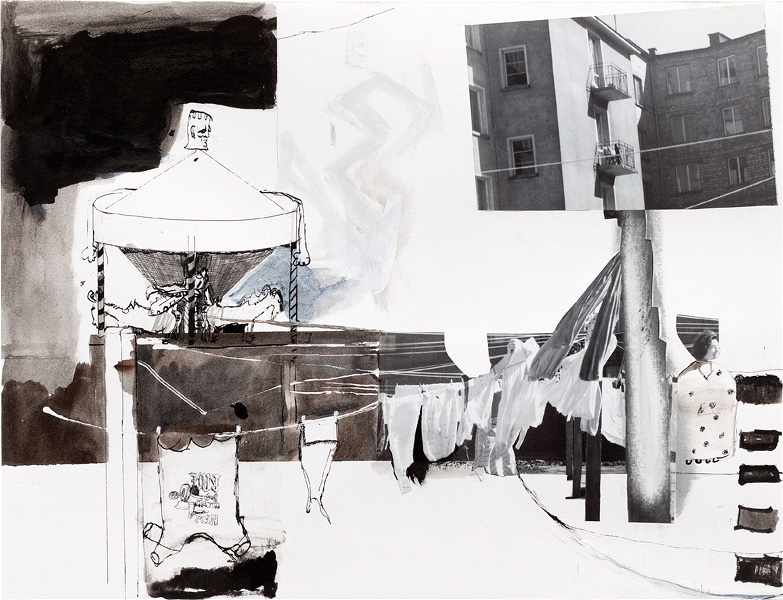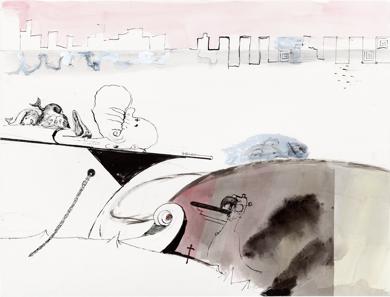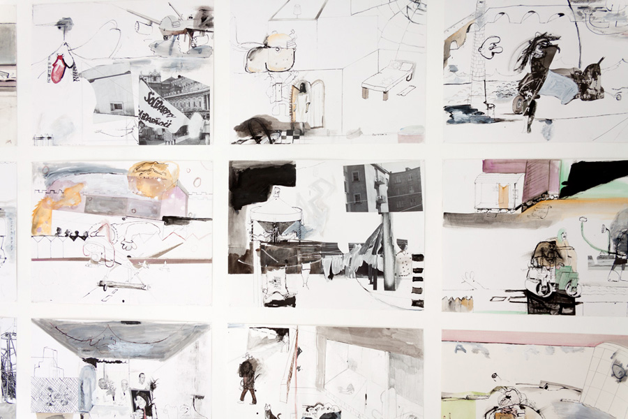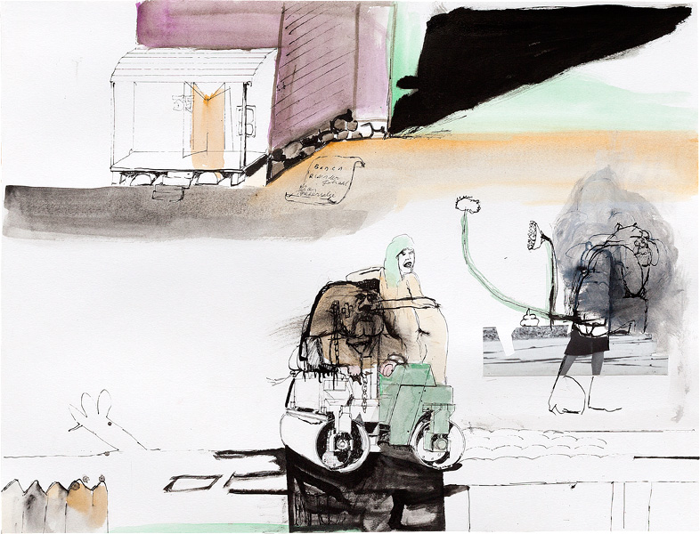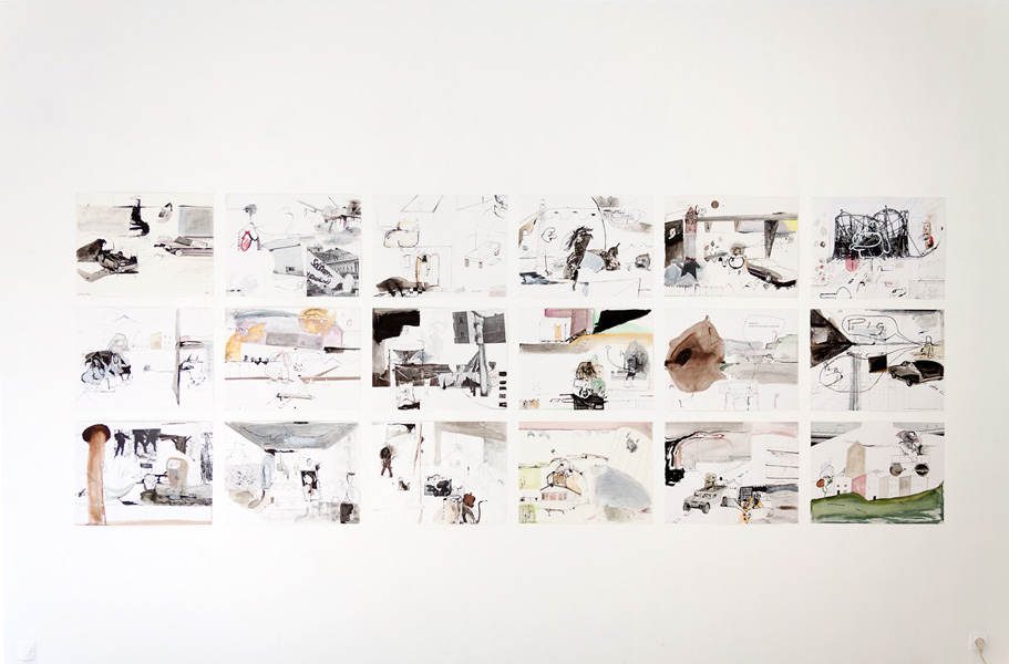 Ink, pencil, watercolour, gouache and collage on paper – all drawings are 45,5 x 60 cm – 2017
