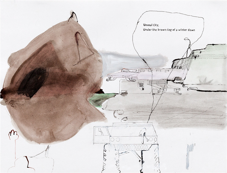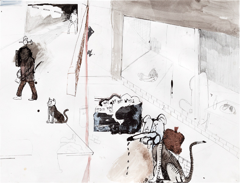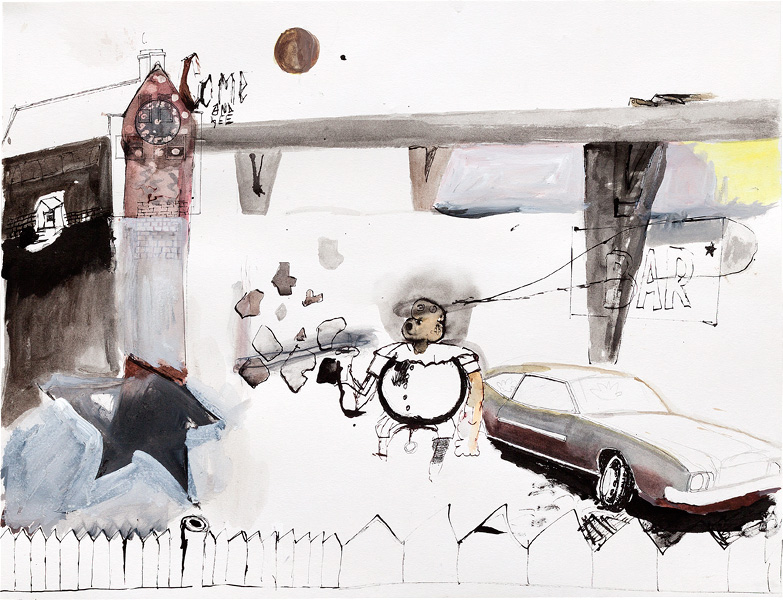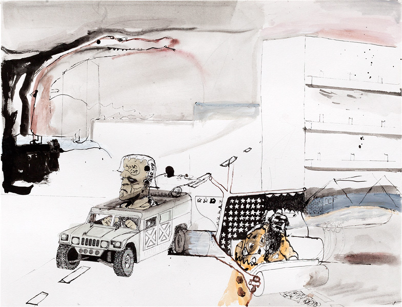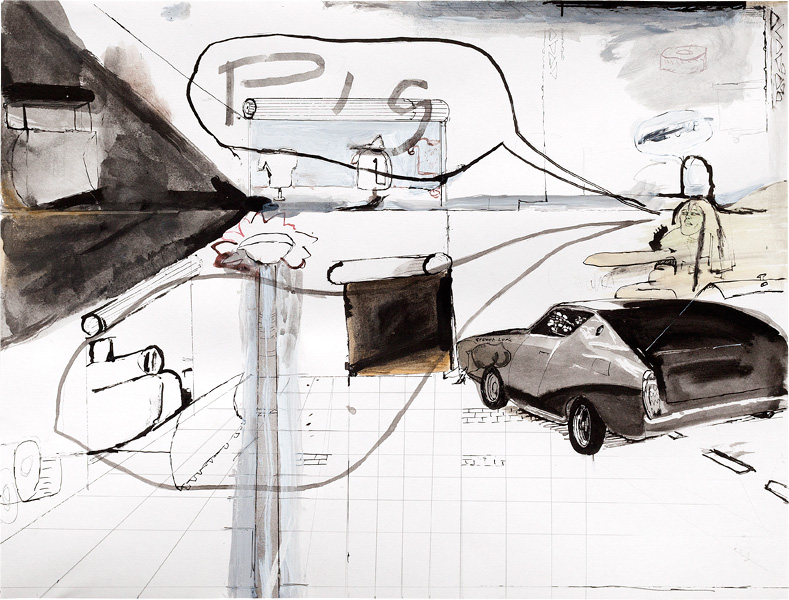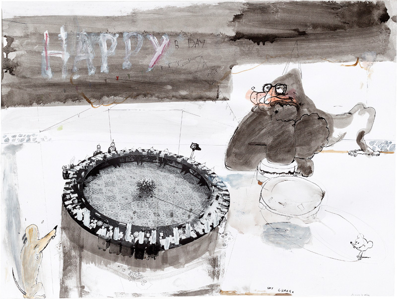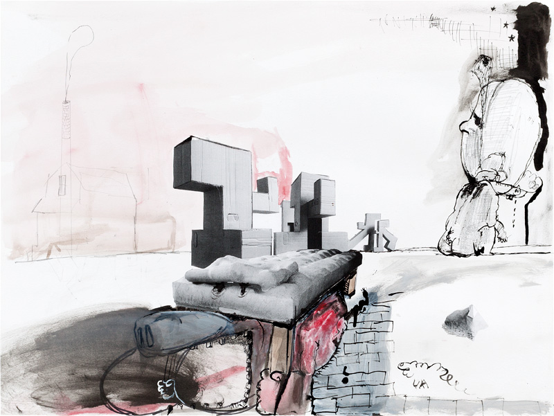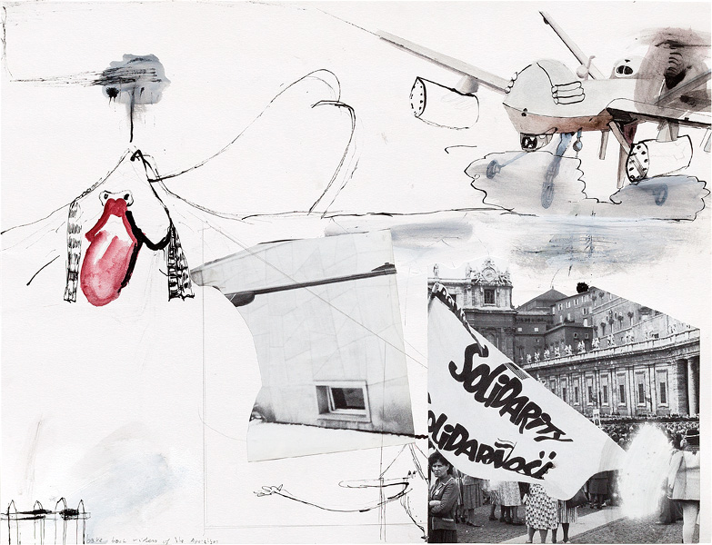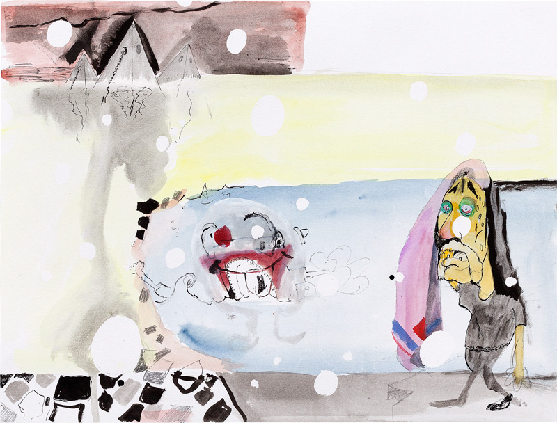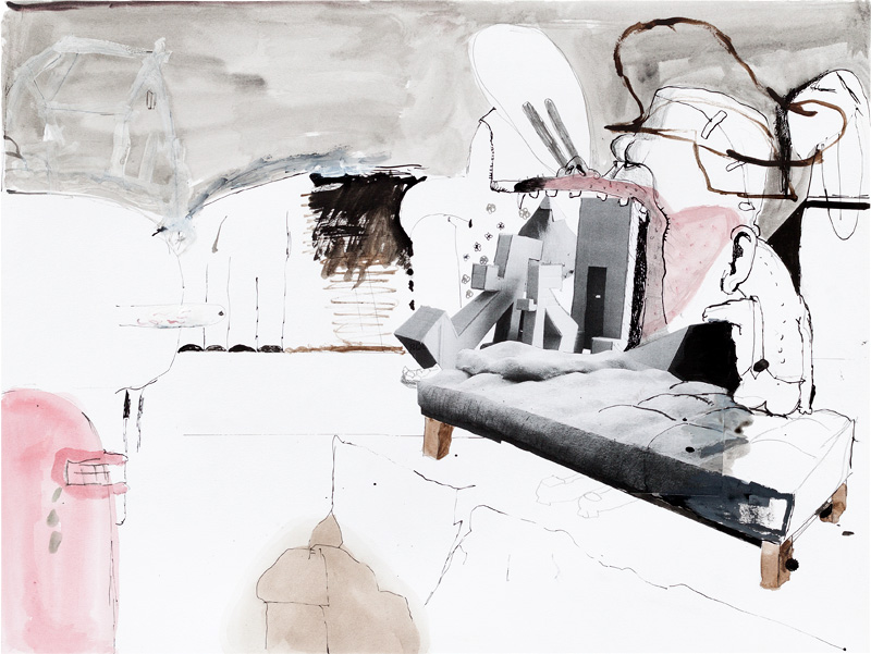 Ink, pencil, watercolour, gouache and collage on paper – all drawings are 45,5 x 60 cm – 2017