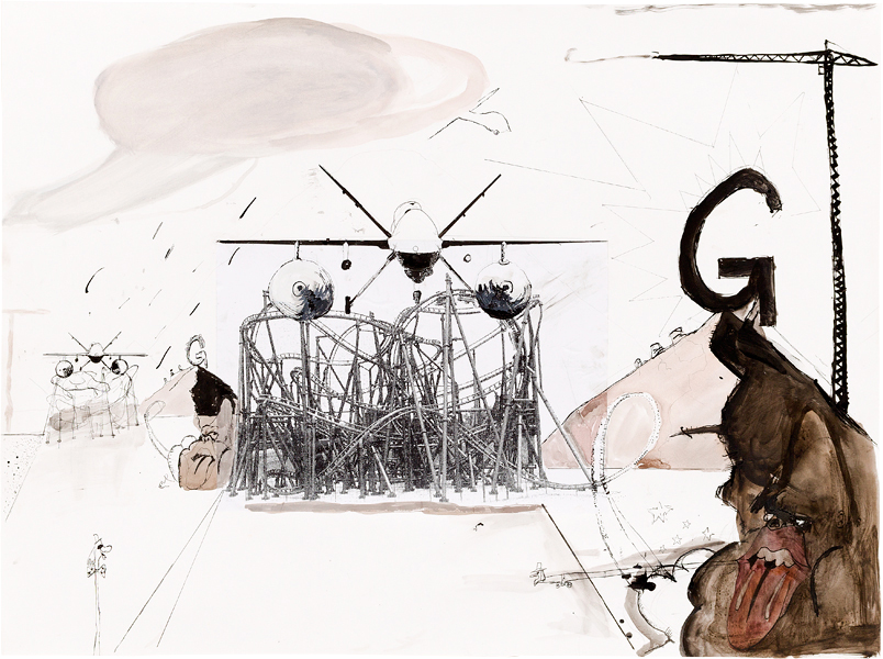 Ink, pencil, watercolour and collage on paper – 97 x 67 cm – 2014