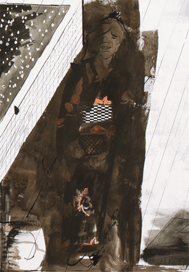 Ink, pencil, watercolour, sepia and collage on paper –  72 x 97 cm – 2012